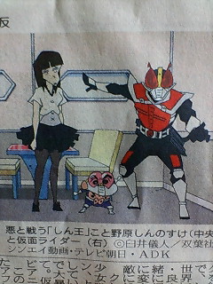 記事には電王ソードフォームとハナがいますが、見事に「クレしん」キャラになってます(笑)良太郎も...(^▽^;)
